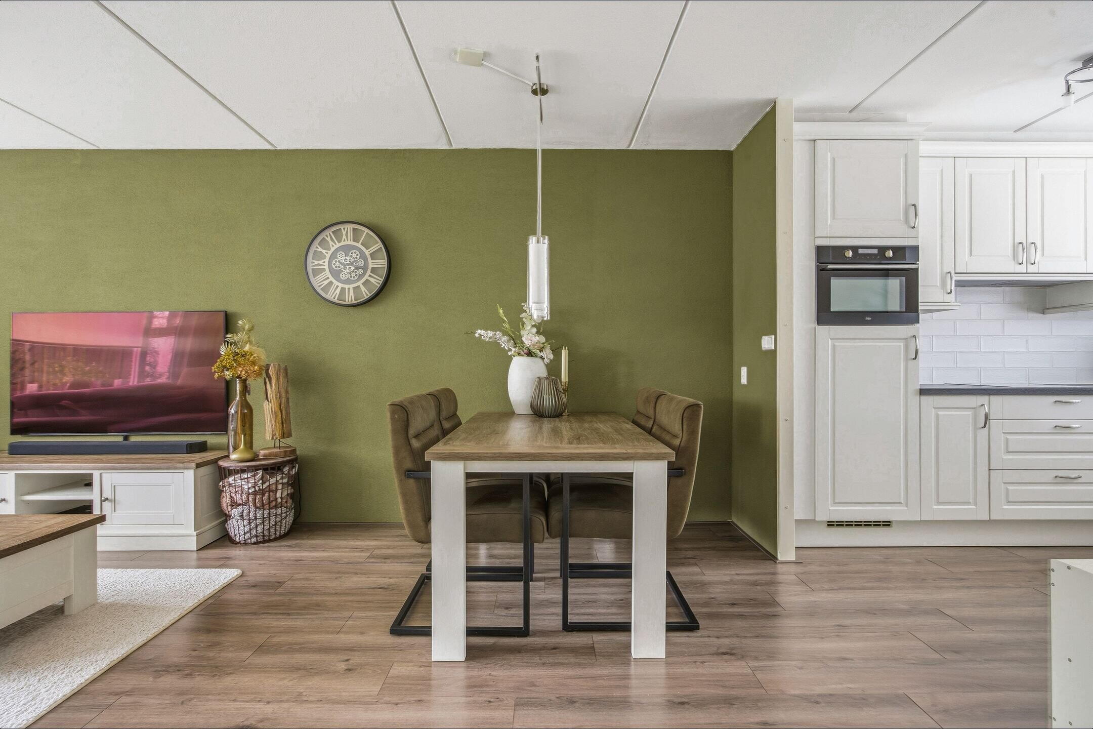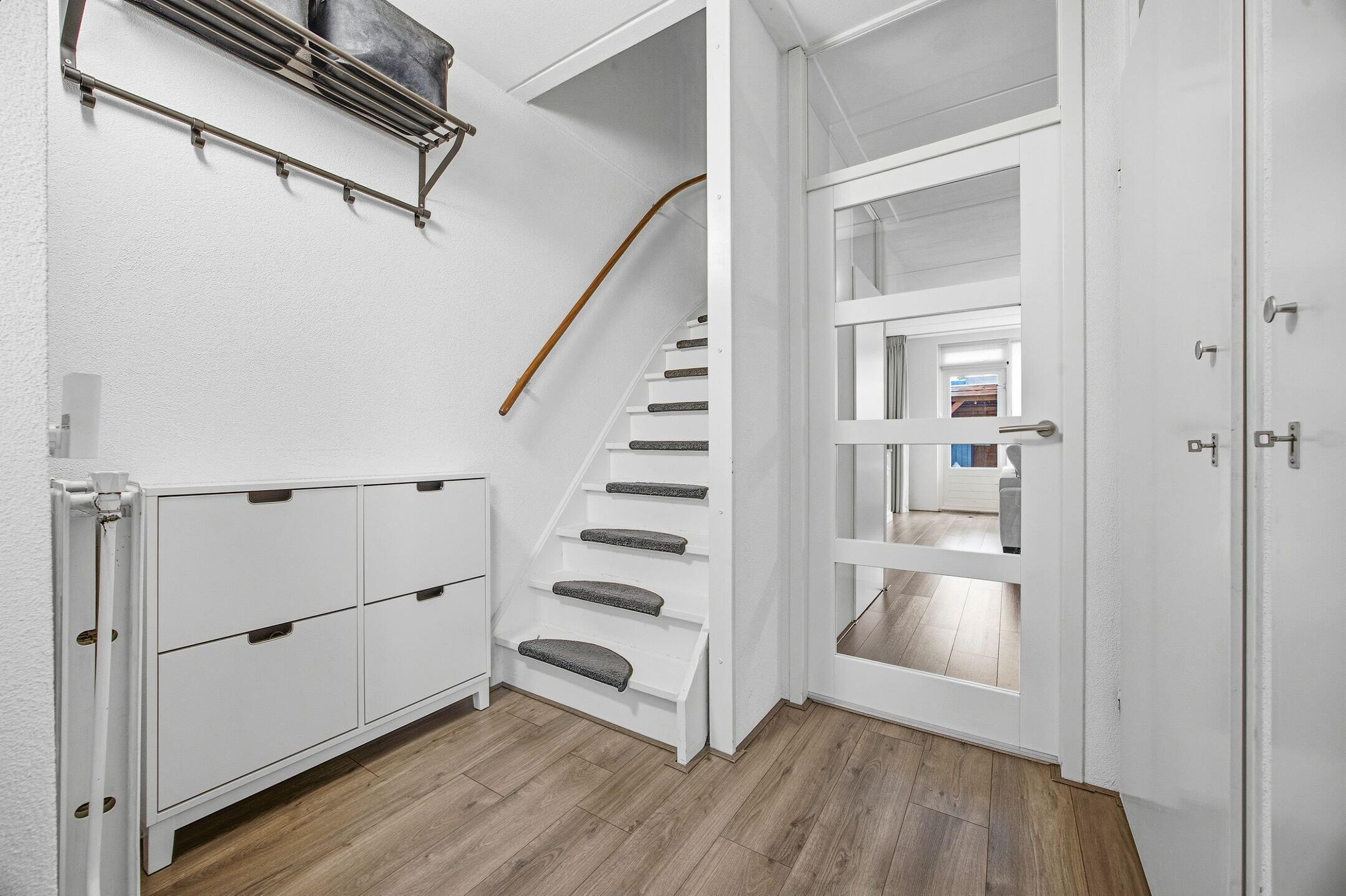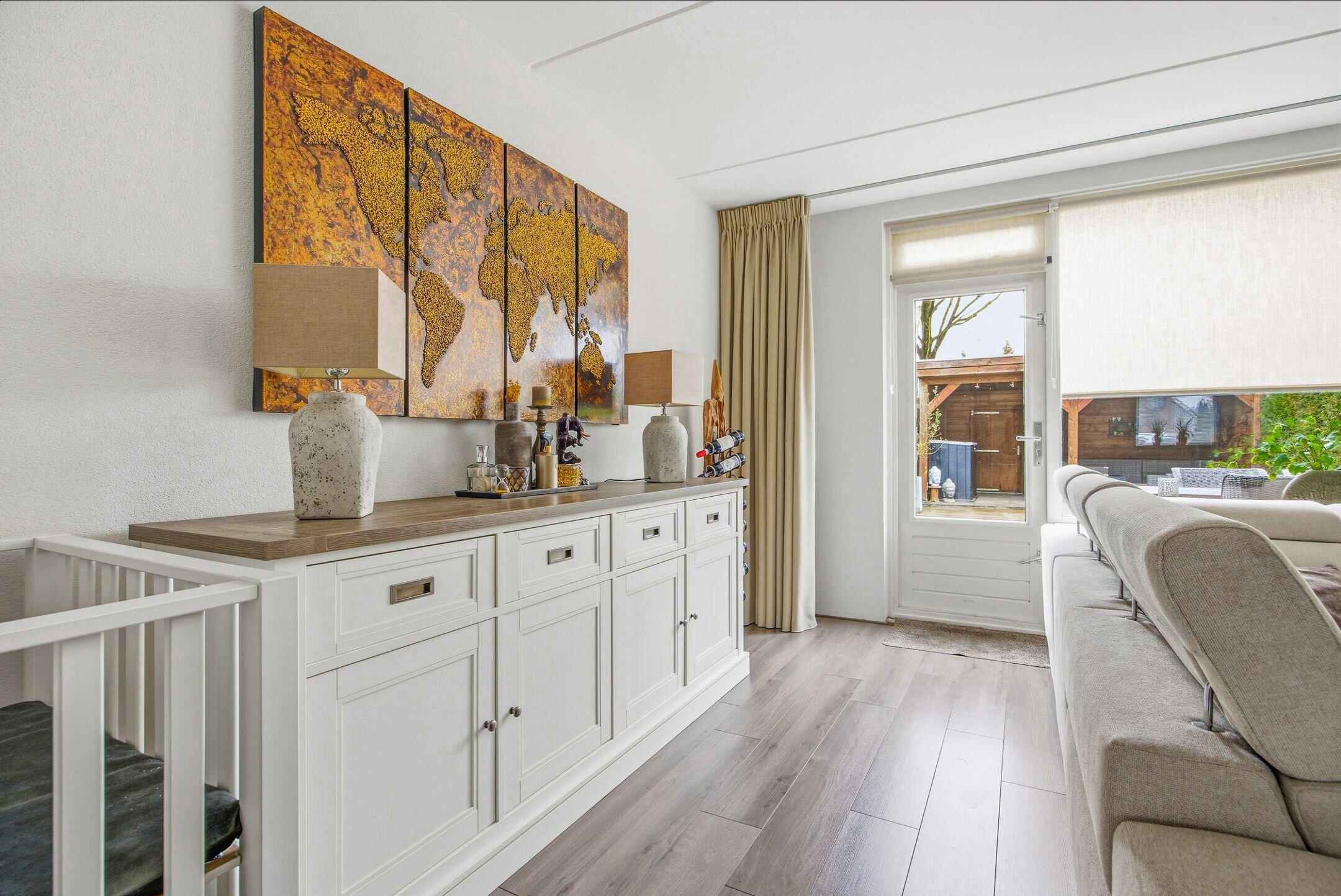 De woonkamer is licht en ruim opgezet en voorzien van een praktische trapkast. Aan de achterzijde van de woonkamer bevindt zich de comfortabele zithoek met directe toegang tot de tuin: een fijne plek om samen te komen of tot rust te komen na een lange dag.