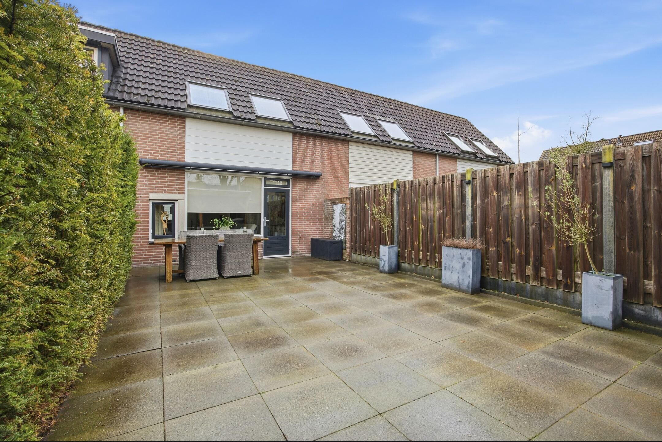 De onderhoudsvriendelijk aangelegde achtertuin ligt op het noorden. Dankzij de royale overkapping, achterom en het grote zonnescherm is dit een heerlijke buitenruimte waar je comfortabel kunt zitten. Extra pluspunt: er is geen directe bebouwing achter de woning, wat zorgt voor extra privacy.